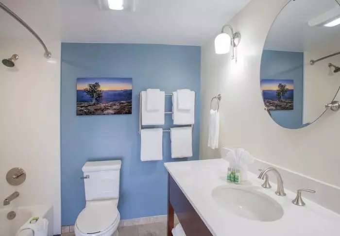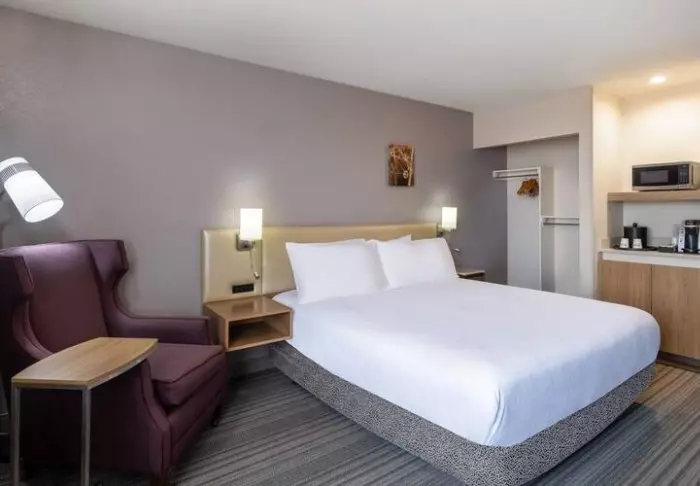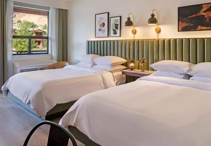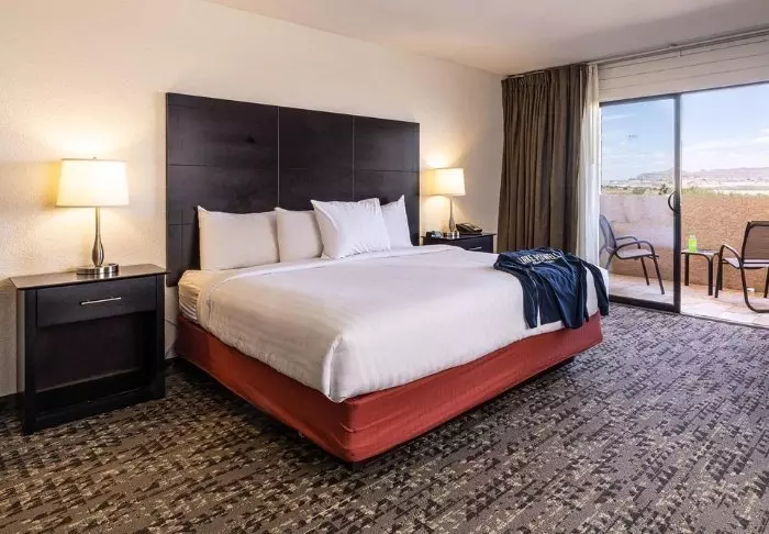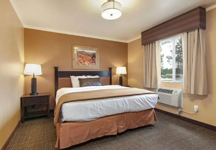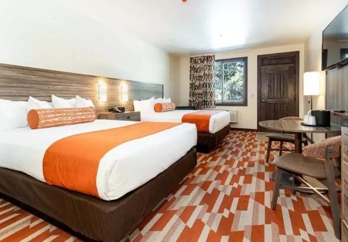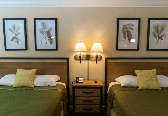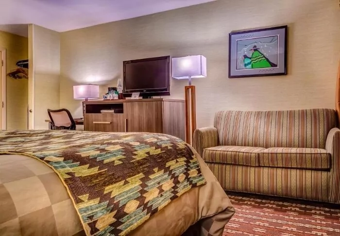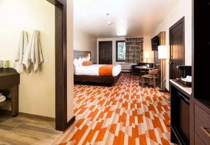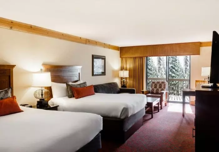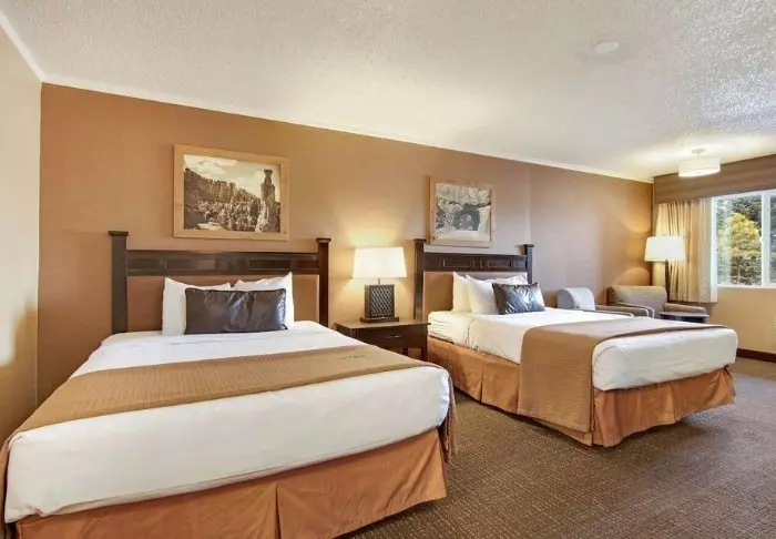 Hotellet är byggt i typisk lodgestil och erbjuder 132 rum, renoverade 2024. Rummen är inredda i modern stil i varma och jordiga färger, vilket ger en mysig atmosfär under din vistelse. Förutom skrivbord, TV, minikyl och kaffemaskin finns det ett eget badrum med hårtork och ett litet urval av kostnadsfria toalettartiklar. Rummen har även aircondition och gratis wifi.