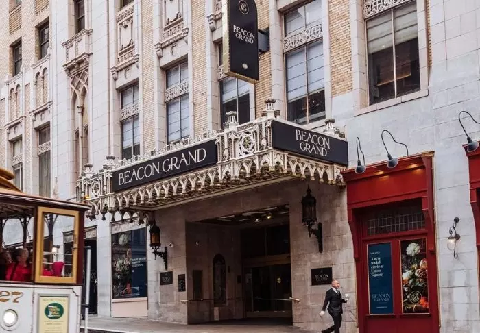 Du hittar det eleganta och historiska Beacon Grand Hotel vid Union Square mitt i hjärtat av San Francisco. Precis utanför dörren hittar du allt, såsom shopping, matställen och kaféer, samt de vackra gamla linbanorna Hyde-Powell och Hyde-Mason, som vänder i slutet av gatan. På Union Square hittar du också en av hållplatserna för de populära ”Hop-On Hop-Off”-bussarna, så läget kan inte bli mycket bättre.