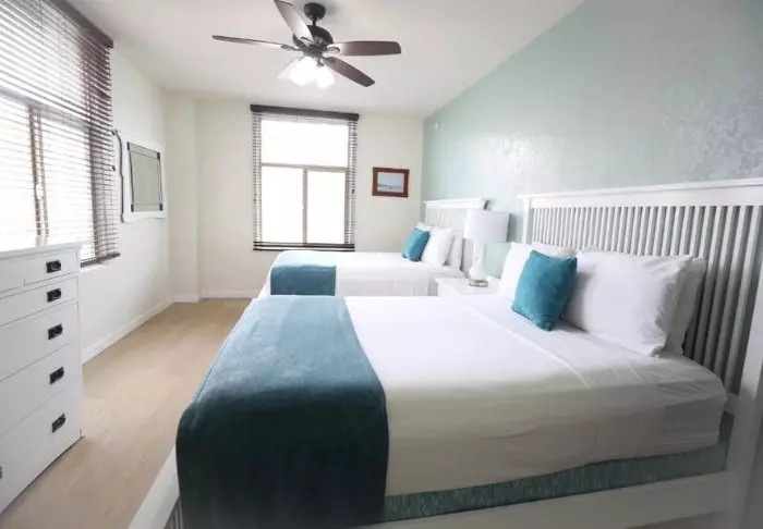 Blue Flamingo Resort Key West har 100 ljusa och luftiga rum inredda i modern stil. Rummen har sängar och väggbeklädnader av återvunnet trä, vilket ger en trevlig och avslappnad atmosfär. Alla rum har TV, wifi, kaffebryggare, minibar, luftkonditionering och eget badrum med hårtork och badrockar.