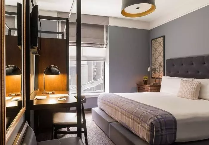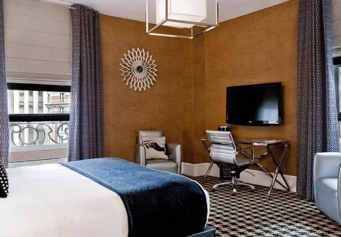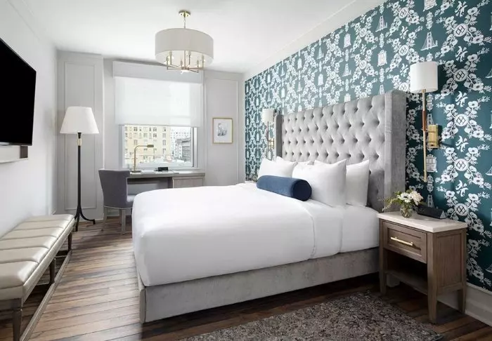 Rummen är inredda i en stilren boutiquestil, där det ursprungliga pompösa uttrycket har bevarats med en modern tolkning i ljusa färger. I samband med renoveringen av hotellet tillverkades en specialdesignad San Francisco-tapet med stadens ikoniska landmärken, vilket ger rummen en riktigt charmig touch. Rummen är inredda med faciliteter som tv, wifi, minikyl, te- och kaffekokare, mörkläggningsgardiner och ett eget badrum med ett litet urval av kostnadsfria toalettartiklar.