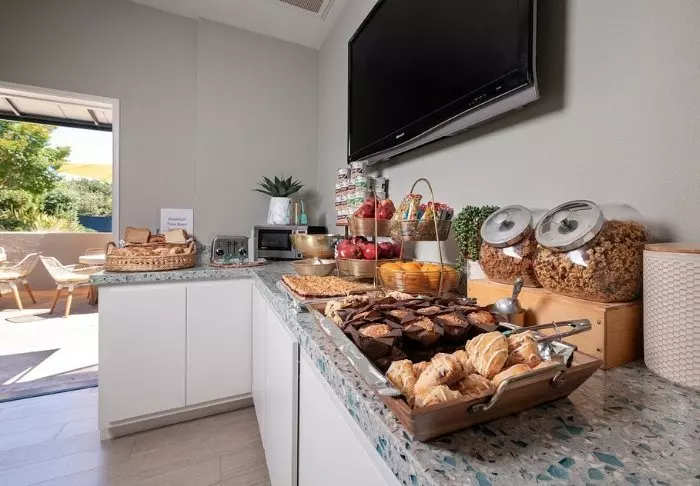 Hotellet serverar en kostnadsfri kontinental frukost bestående av bagels och flingor varje morgon, så att du kan få en riktigt bra start på dagen. För andra måltider rekommenderas det starkt att gästerna utforskar de små lokala restaurangerna runt resorten, vilka specialiserar sig på färsk fisk och skaldjur.