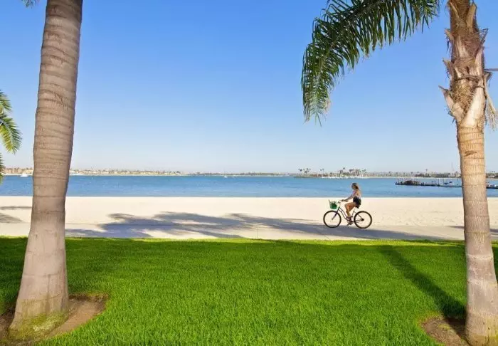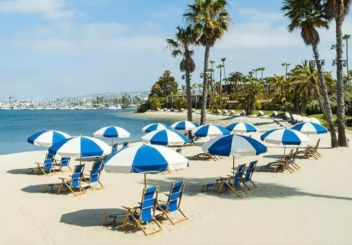Vid San Diegos vackra kustlinje hittar du charmiga Bahia Resort. Här får du ett perfekt läge mellan stranden Mission Beach och den vackra bukten Mission Bay.