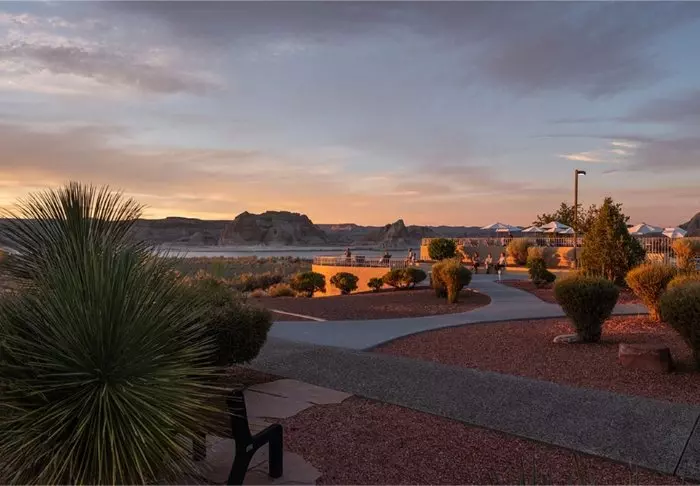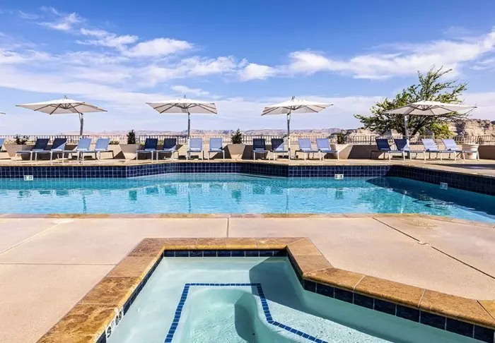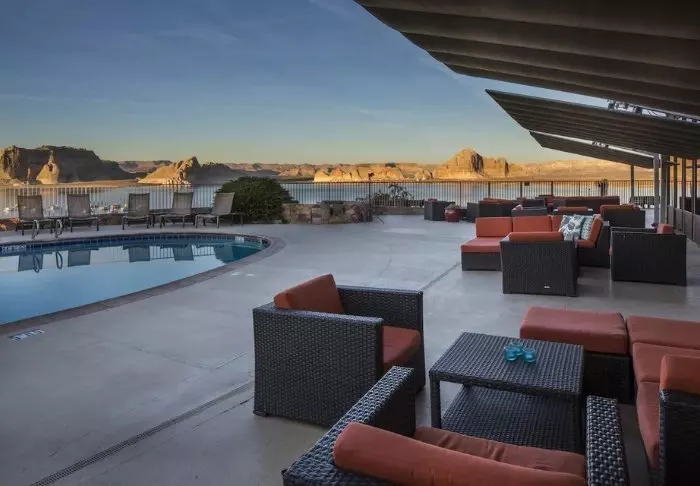 Vid utomhuspoolen och jacuzzin kan du koppla av och se ut över Lake Powell, där du kan följa med i båtlivet på sjön. Har du själv lust att utforska Lake Powell från vattnet kan hotellet vara behjälplig med att arrangera all världens båtturer (beställs direkt genom hotellet).