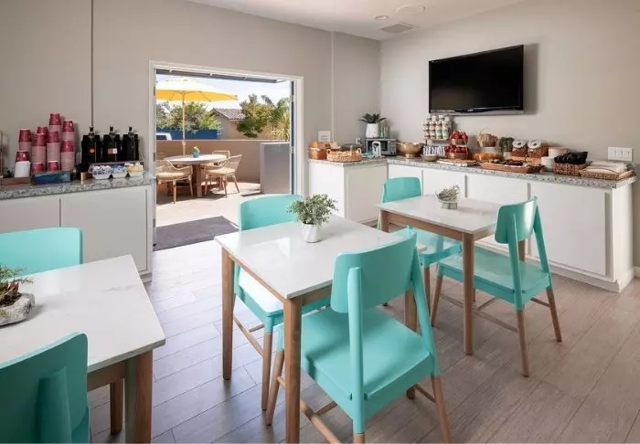 Hotellet serverar kontinental frukost som stillar den värsta hungern. Behöver du en mer mättande frukost bör du besöka den närliggande och populära frukostkedjan IHOP, som är känd för sina höga pannkakstorn och omeletter.