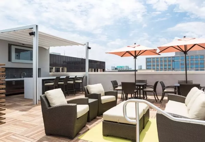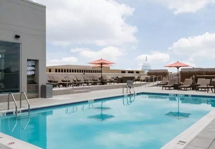 Hotellet kännetecknas av sin enkla och moderna stil, och förutom sitt strategiska läge, erbjuder det en vacker takterrass med utsikt över Kapitolium. Den säsongsbetonade takterrassen erbjuder inte bara en spektakulär utsikt, utan har också en härlig pool som gör att du kan komma bort från storstaden och, inte minst, få lite svalka, särskilt under de varma sommarmånaderna.