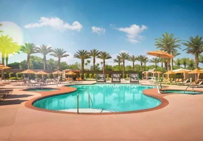 Svalka dig i ökenvärmen vid en av de tre poolerna, där du kan slappna av med en lätt förfriskning från poolbaren eller bara simma några varv. Här finns solstolar med parasoller och du kan mot betalning reservera en cabana på hotellets webbplats, om du vill öka komforten (först till kvarn gäller). Vill du skämma bort dig själv ännu mer kan du besöka hotellets spaavdelning.