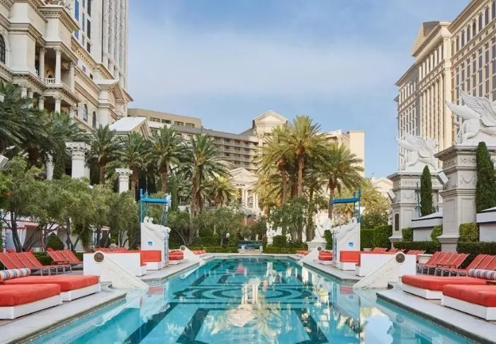 Caesars Palace bjuder på en rad faciliteter och du lär knappast få tråkigt under din vistelse här. Med inte mindre än sju spektakulära pooler kan du njuta av solen medan du slappnar av eller tar ett uppfriskande dopp. För dem som söker spänning och underhållning är Caesars Palace känt för sitt ikoniska kasino, där man kan pröva lyckan på otaliga spelbord och spelautomater. Vill du hellre slappna av och skämma bort dig själv kan du boka en behandling i hotellets spa för att njuta och ladda batterierna.