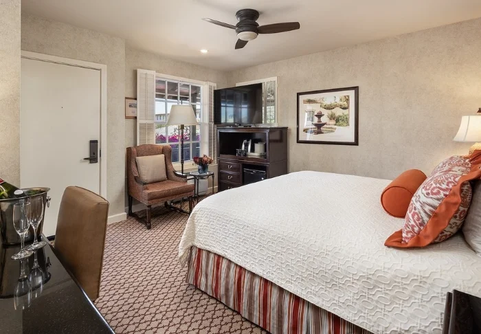 Det historiska boutiquehotellet Casa Munras Garden Hotel & Spa ligger mitt i hjärtat av charmiga Monterey. Här kan du låta bilen stå och njuta av att stadens populära områden som Old Fisherman’s Wharf och Del Monte Beach nås enkelt till fots, bara cirka 1 km bort. Vid den gamla piren, Old Fisherman’s Wharf, kan du prova en lokal klassiker – “shrimp dog” – och stilla sötsuget på någon av stadens många dessertbutiker. Det är också härifrån de flesta valsafariturerna avgår. Besöker du Old Fisherman’s Wharf från mitten av maj till den 1 september kan du använda stadens kostnadsfria shuttleservice, men det går också bra att promenera vidare till Cannery Row, som ligger 2,3 km från hotellet. Vill du upptäcka Monterey på ett annat sätt kan du hyra cykel på hotellet och ta dig fram längs den asfalterade cykelvägen vid hamnpromenaden.