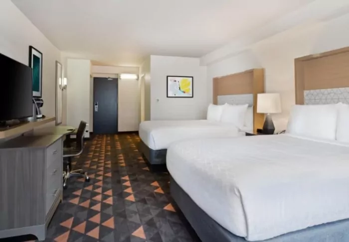 Välkommen till hjärtat av Orlando, där det finns nöjesparker, restauranger och shopping i överflöd. Här kan du njuta av de varma temperaturerna i ”The Sunshine State” vid poolen på ditt hotell. Holiday Inn & Suites Across from Universal Orlando ligger precis här, i närheten av allt. Som namnet antyder ligger den stora nöjesparken Universal Studios mittemot hotellet, och du kan enkelt ta dig dit med en av hotellets kostnadsfria pendelbussar. I närheten finns även andra attraktioner, såsom Disney, och goda shoppingmöjligheter i “The Mall at Millenia”.
