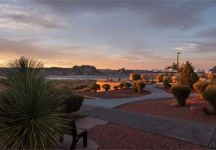 Vid utomhuspoolen och jacuzzin kan du koppla av och se ut över Lake Powell, där du kan följa med i båtlivet på sjön. Har du själv lust att utforska Lake Powell från vattnet kan hotellet vara behjälplig med att arrangera all världens båtturer (beställs direkt genom hotellet).