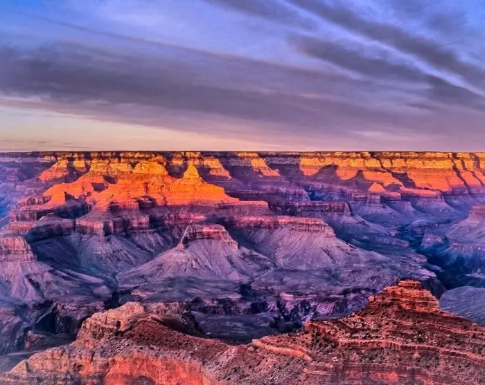 En av de mest ikoniska sevärdheterna är Grand Canyon, som ligger i norra Arizona. Grand Canyon skapades för miljontals år sedan av erosionen av Colorado-floden, tektoniska rörelser och effekterna av vädret. Grand Canyon är ett av världens sju naturliga underverk, och oavsett hur exakt det bildades är det imponerande att uppleva kanjonen, som sträcker sig över ett stort område som är mer än 446 km långt, upp till 29 km brett och över 1 800 meter djupt.