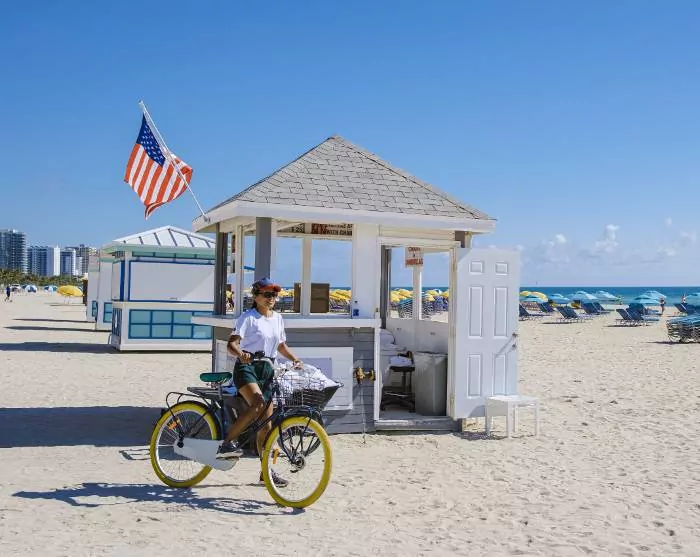 Du kommer omedelbart veta att du närmar dig Miami när den vidsträckta havsutsikten byts ut mot ett urbant landskap med höga byggnader, stora bilar och kryssningsfartyg. Du kommer att bo i Miami Beach, som är känt för sina färgglada art deco-hus, dess strand och butikerna längs berömda Collins Avenue.
