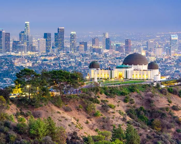 Väljer du att köra direkt till Los Angeles har du också goda möjligheter att njuta av havet. Du kan även köra till Griffith Observatory, varifrån du har panoramiska utsikter över staden. När dagen går mot sitt slut är det inget mindre än fantastiskt att stå vid observatoriet och se solen gå ner bakom den enorma staden, som långsamt lyser upp i takt med att mörkret faller.