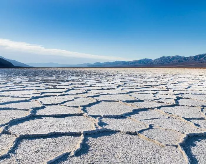 Du kan välja att ta den lite längre rutten där du kör genom Death Valley, som är en av USAs största nationalparker och känd för sina extrema temperaturer på över 50 °C. Här lär du märka att öknen är mycket mer än bara oändliga sträcker med sand. Vid Badwater Basin finns en enorm saltslätt, som också är USAs lägsta punkt med en placering på 86 meter under havet.