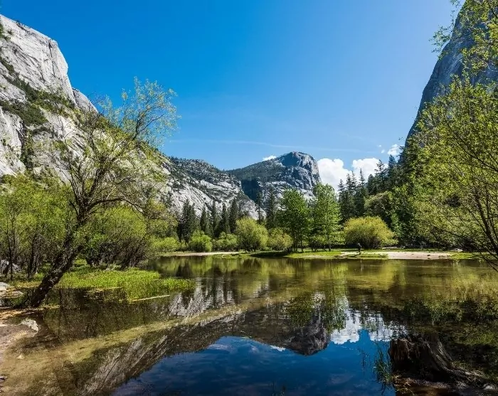 I parken möts du av spektakulära vattenfall som störtar ner från dramatiska klippväggar. Här i Yosemite hittar alla något som passar deras svårighetsgrad och ålder, och det är inte långt att gå för att uppleva de populära naturområdena. Ett bra ställe att börja är vid vattenfallet Lower Yosemite Fall som är lättillgängligt – eller sjön Mirror Lake, där de omgivande bergen speglas i vattnets yta. Du kan med fördel låta dig vägledas om lämpliga rutter i Welcome Center.