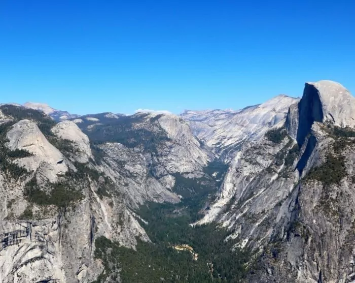 Under sommarmånaderna, när snön har smält, är Glacier Point en utsiktsplats på cirka 2200 meters höjd som du verkligen inte får missa. Du kan både köra hit med bil eller boka en busstur hit (bokas direkt i parken efter först-till-kvarn-princip eller via telefonisk förhandsbeställning, som du kan läsa mer om här). Om du känner för att vandra från Glacier Point, kan du ta bussen upp och vandra nerför Four Mile Trail.