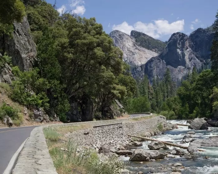 Du kan se fram emot den sista timmens bilresa mot Yosemite Valley (via Arch Rock Entrance), där du kommer att köra genom fantastiskt vackra bergslandskap med den skummande Merced River som löper parallellt med vägen.