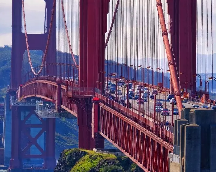 Missa inte att resa över stadens landmärke Golden Gate Bridge. Efter att ha korsat bron kan du njuta av oförglömlig utsikt över San Francisco Bay och stadens takåsar i bakgrunden. Du kan ta dig hit på en hop-on hop-off-buss, eller så kan du hyra en cykel och använda cykelvägen på bron. Det största utbudet av cykeluthyrningsföretag finns i området runt Fisherman’s Wharf. Fortsätt din cykeltur till den närliggande staden Sausalito, som kommer att charma dig med sin mysiga gågata och ett stort utbud av matställen och butiker. Härifrån kan du ta en färja tillbaka till Fisherman’s Wharf.
