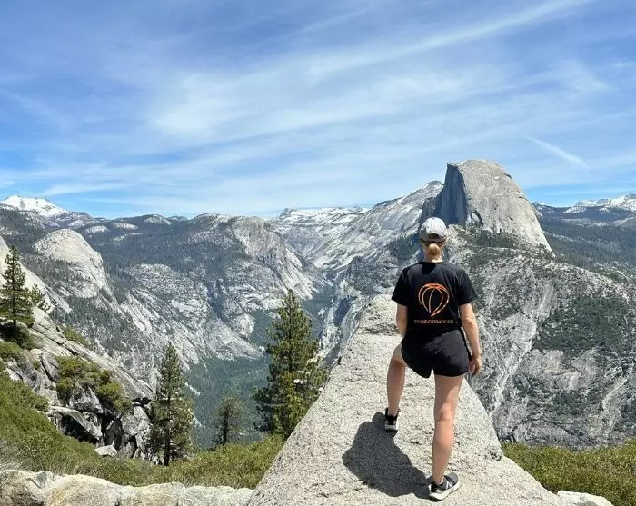 Från Glacier Point kan du också se en exceptionell solnedgång – ögonblicket då solen får det stora berget, Half Dome, att glöda i orange.