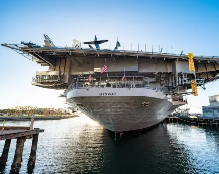 I San Diegos hamn kan du besöka hangarfartyget USS Midway, som idag fungerar som ett interaktivt museum. Här får du en inblick i livet ombord på ett hangarfartyg, och du kan se stridsflygplan på nära håll. Här finns också en F-16-simulator där du kan leva ut din inre pilotdröm.