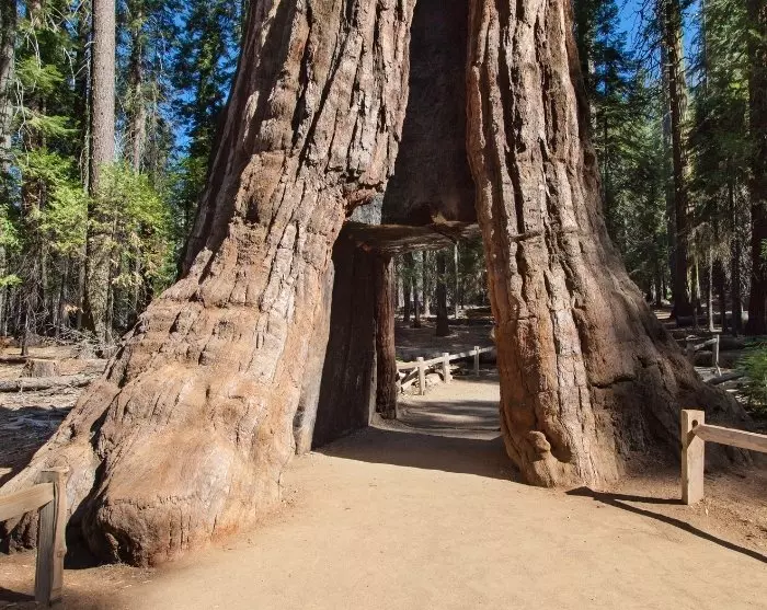 När du lämnar ditt hotell bör du ställa in GPS:en på att köra via Mariposa Grove. Här hittar du en lund med några av världens största träd – de gigantiska sequoiaträden – som enkelt nås via de anlagda stigarna (utom när det är snö på marken under vintersäsongen). Här känner du dig riktigt liten bland de stora stammarna, och inte minst vid California Tunnel Tree, som du kan gå igenom.