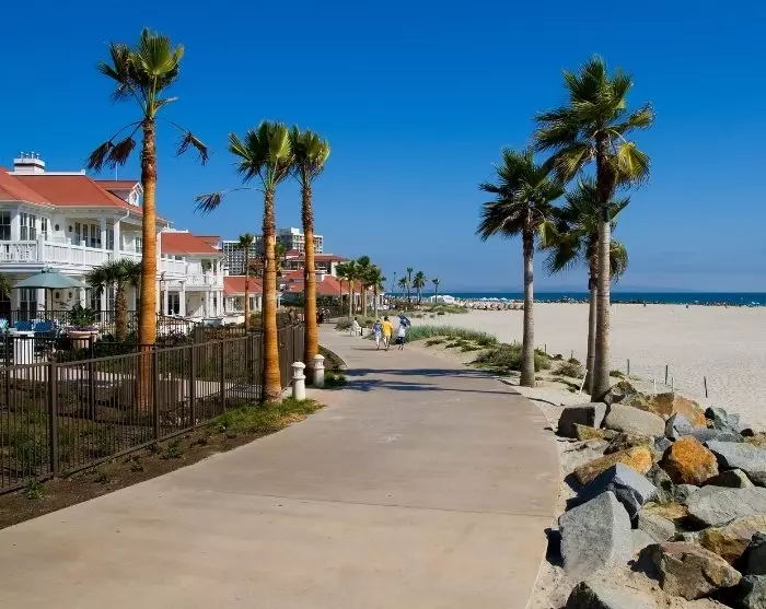 Eller ta en tur till Coronado Island, där du har fantastisk utsikt över San Diegos centrum. Den charmiga halvön är känd för sina vackra stränder och det historiska trähotellet från 1888, Hotel Del Coronado, som har använts i filmer med kända skådespelare och skådespelerskor som Marilyn Monroe.