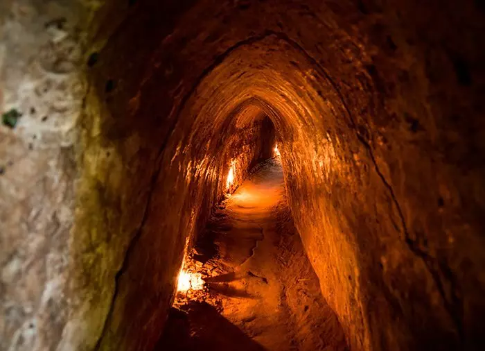 Under Vietnamkriget byggde nordvietnamesiska Viet Conger en labyrint av tunnlar som utgjorde en länk mellan underjordiska kommandocentraler, skyddsrum, sjukhus, skolor samt träningslokaler, och som fungerade som gömställen där det genomfördes riktade insatser mot amerikanerna. Ingångarna till tunnelsystemet var mycket små och själva tunnelsystemet var anpassat för mycket smala personer. Tunnelsystemet var ett perfekt gömställe för Viet Cong och även en utmärkt utgångspunkt för de riktade insatser som Viet Congerna blev berömda och omtalade för.