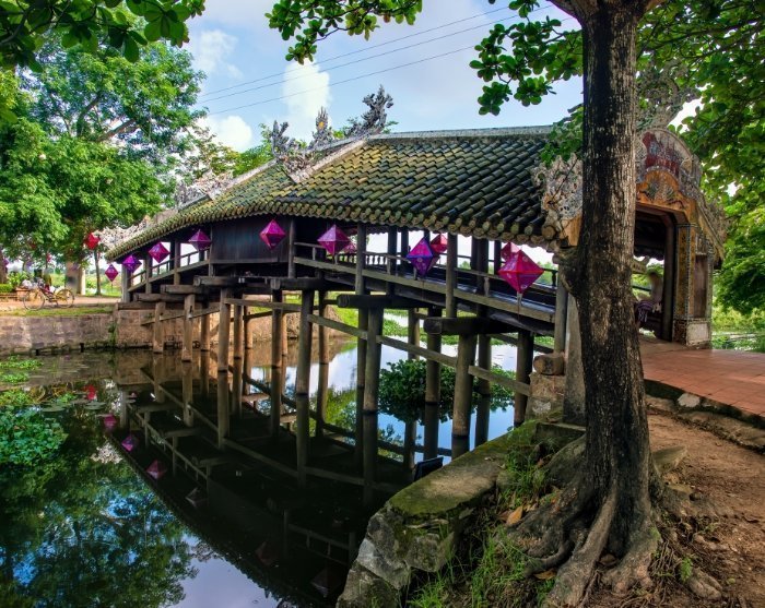 Idag kommer du att få uppleva landsbygden runt Hué från en cykelsadel. Du kommer att hämtas på ditt hotell på morgonen. Din guide tar med cyklarna, och efter instruktioner och justering av cyklarna kommer ni att ge er ut på landsbygden i ett avkopplande tempo. Under resan passerar ni smaragdgröna fält och otaliga vattenbufflar tills ni kommer fram till Thanh Toan Bridge.