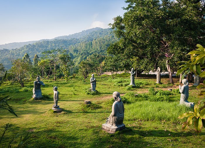 Guiden hämtar dig på hotellet efter frukost och efter cirka 1,5 timmars åktur ankommer du till linbanan, som tar dig på en mycket vacker tur upp till 1 400 meters höjd. En imponerande syn möter dig på toppen, där den gyllene bron plötsligt dyker upp, svävande på två stora händer uthuggna i sten. Bron stod färdig 2018 och har snabbt blivit världsberömd för sin spektakulära utformning mitt i ett magiskt bergsområde. Den designades till att likna Guds händer, som lyfter upp en bit av jorden till sig likt en stig i himlen. Området vid linbanans mellanstation etablerades ursprungligen 1919 av den franska kolonialmakten och användes bland annat för att lagra vin. De kyligare temperaturerna, som normalt ligger 10 grader under temperaturen nere vid kusten, gjorde området perfekt för detta. Här har du tid att gå runt i de vackra och färgrika blomsterträdgårdarna, som även kallas ”Le Jardin d’Amour”, ”kärlekens trädgård”. Där sitter även en enorm vit Buddha och ser ut över bergskanten och de frodiga kullarna. Vidare med linbanan upp till toppen av berget hälsas du välkommen av slottstornen. Du befinner dig nu i hjärtat av parken och ett äventyrligt landskap med olika teman öppnar sig för dig, bland annat karneval i Rio, en fransk by, ett japanskt tehus och mycket mer. Här har du fri tillgång till de flesta attraktionerna för både barn och vuxna. Efter en härlig lunch kan du på egen hand ge dig ut bland attraktionerna, gå runt och njuta av omgivningarna, köpa lite souvenirer eller vila benen en stund på ett av de många kaféerna och de fina restaurangerna eller i ett lugnt hörn av parken, t.ex. vid Linh Ung-pagoden.
