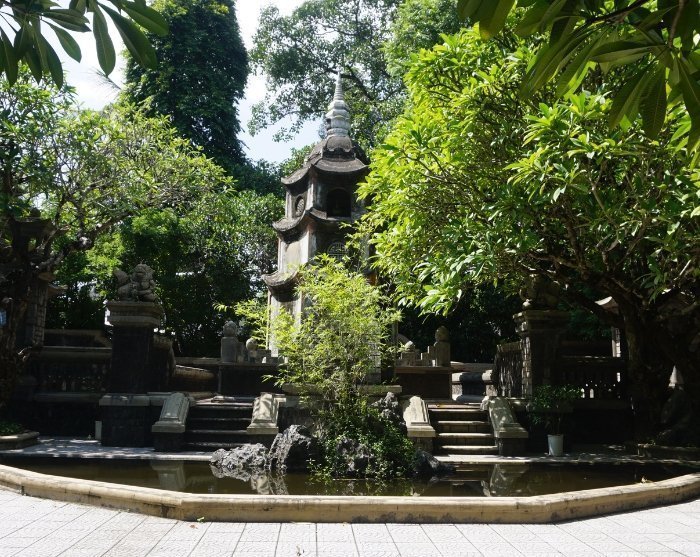Du hämtas på hotellet av din guide och härifrån åker du till den fridfulla Bao Quoc-pagoden, ett historiskt buddhistiskt tempelkomplex, idylliskt beläget vid Parfymflodens strand. Pagoden, uppförd på 1600-talet, är känd för sin lugna atmosfär och traditionella arkitektur. Tempelkomplexet hyser vackra byggnader och paviljonger, omgivna av frodiga trädgårdar och gamla träd, vilket gör det till en idealisk plats för meditation och inre frid. Huvudtemplet har en imponerande fasad, och inuti finner du detaljerad utsmyckning med buddhistiska statyer och konstverk som speglar buddhismens djup. Dessutom fungerar Bao Quoc-pagoden som ett viktigt utbildningscenter för buddhistiska munkar, där de studerar buddhistiska skrifter och fördjupar sig i buddhistisk filosofi och praktik.