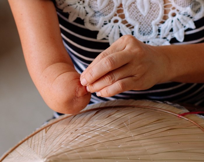 Därefter besöker du ett lokalt hem där du träffar den skickliga hantverkaren Fru Thuy, som har tillverkat traditionella konformade hattar i mer än fyra decennier. Upplev hennes passion och hantverk och lyssna till några av hennes personliga berättelser. Därefter går turen till ett lokalt matställe där du kan se fram emot en smakfull upplevelse med Hués berömda ångade riskakor, Bánh Bèo Huế.