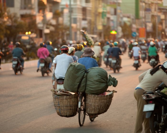 På kvällen, när solen har gått ner, vaknar Ho Chi Minh-staden på allvar, och miljontals människor hoppa på sina skotrar och kör in till den upplysta metropolen för att äta middag och träffa vänner.