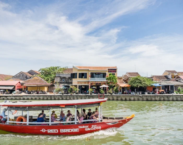 Efter besöket på marknaden fortsätter du med båt. Du går ombord på Red Bridge-båten och glider långsamt fram längs Hoi An-floden. Under färden har du gott om tid att ta in livet längs flodstranden.