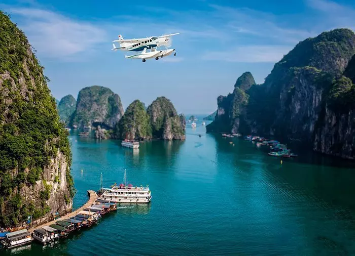 Innan du går ombord för din minikryssning har du möjlighet att köpa till en tur med ett sjöflygplan över Ha Long-bukten. Det lilla sjöflygplanet har plats för 12 personer och i det kan du från ett fågelperspektiv iaktta de spännande öarna och klippformationerna som ligger utspridda under dig i den vackra bukten. Det är inte för inte som denna pärla finns med på UNESCOs lista över världsnaturarv. Det är en helt unik upplevelse.