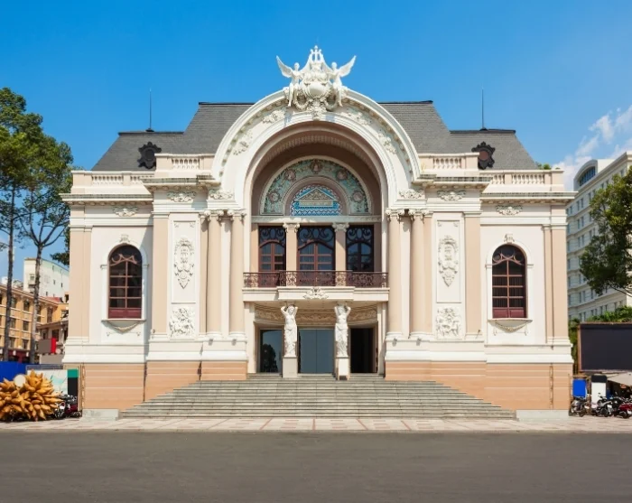 Du passerar Saigonoperan, ett arkitektoniskt mästerverk från 1901 och en levande symbol för stadens kulturella arv. Operahuset har haft en fascinerande historia och har bland annat fungerat både som skyddsrum och senare som underhus åt det sydvietnamesiska parlamentet.