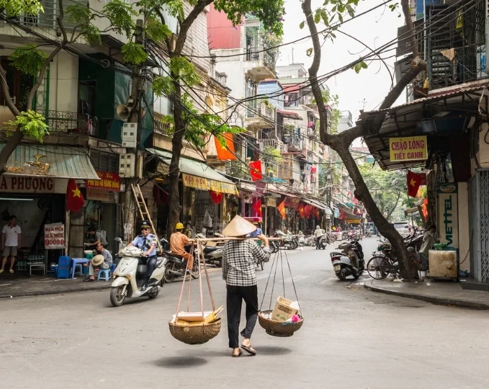 Turen fortsätter med en traditionell cykeltaxi – även kallad cyclo – genom det gamla kvarterets labyrint av smala gator och livlig handel. Det gamla kvarteret är känt för sina 36 gator som ursprungligen fick sina namn efter de varor som såldes här: bambu, siden, papper och plåt. Idag lever många av gatunamnen vidare och stämningen sprudlar av lokal charm där invånarna i Hanoi fortfarande handlar, småpratar och serverar rykande het pho från gatuköken.