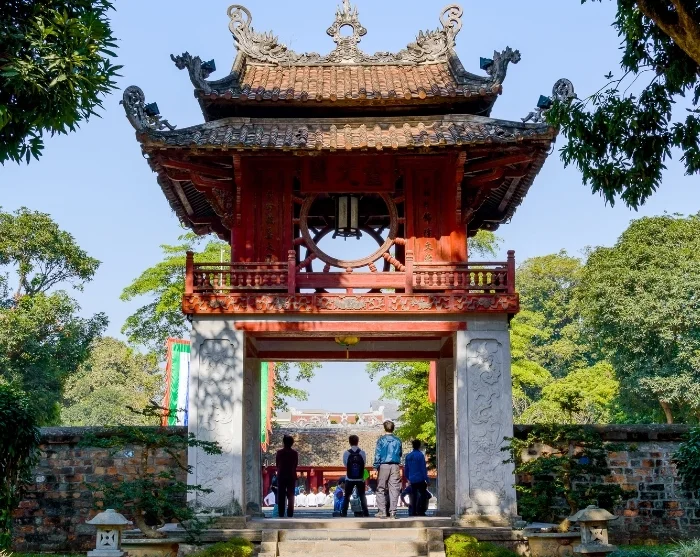 Efteråt körs du till Litteraturens tempel, ett fridfullt tempelkomplex som uppfördes på 1100-talet av elever till den kinesiske filosofen Konfucius. Med nästan 1 000 år bakom sig är templet ett sällsynt och välbevarat exempel på traditionell vietnamesisk arkitektur, komplett med pelargångar, dammar och gröna innergårdar där unga studenter än idag kommer för att be om tur inför sina tentor.
