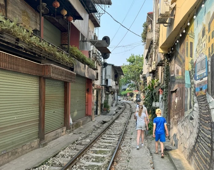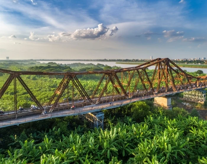 Efter en spännande cyklotur besöker du den historiska Long Bien-bron – ett ikoniskt landmärke från den franska kolonialtiden, uppförd i början av 1900-talet. Den karaktäristiska järnbron sträcker sig över Röda floden och skadades svårt under Vietnamkriget, men står idag som en stark symbol för Hanois motståndskraft. Bron är reserverad för tåg, cyklister och fotgängare och bjuder på en stämningsfull upplevelse. Här kan du träffa lokalbor som cyklar till jobbet eller säljer frukt vid spåren och njuta av utsikten över gröna små flodöar med odlade marker mitt i storstaden – ett populärt motiv för både fotografer och resenärer som vill fånga Hanois själ.