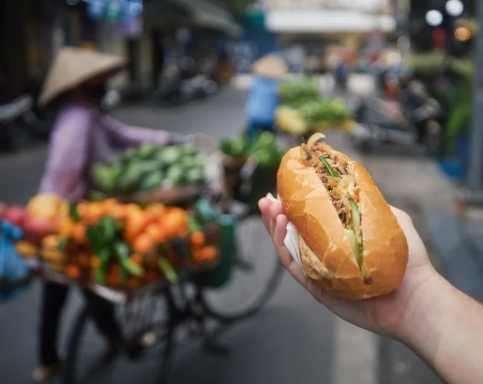 Vid lunchtid kan du ge dig ut på jakt efter Hanois berömda gatumat. Smaka på en rykande skål pho, njut av doften från grillade bun cha eller ta med dig en krispig banh mi på språng.