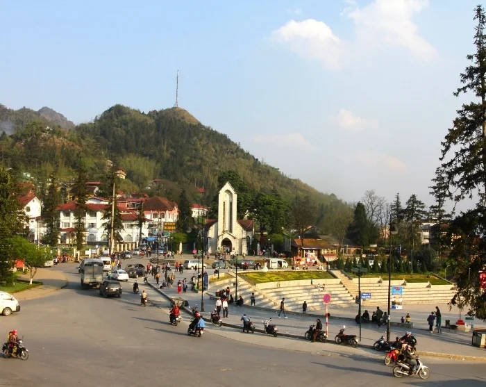 Du har morgonen och förmiddagen fria för egna upptäckter. Passa på att ta en promenad till det centrala torget vid den gamla stenkyrkan, som är ett av Sapas kännetecken. Här säljer kvinnor från Hmong- och Dao-folken färgglatt hantverk som broderade väskor, sjalar och smycken, klädda i sina traditionella, färgglada dräkter. Det är en utmärkt plats för att hitta en personlig souvenir eller bara njuta av atmosfären och iaktta det lokala vardagslivet i Sapa.