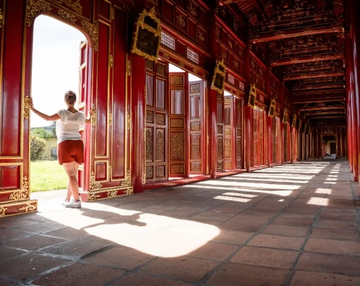 Därefter går resan vidare till kejsar Khai Dinhs grav, som skiljer sig markant från andra kejsargravar i området. Gravkomplexet byggdes i början av 1900-talet och förenar traditionella vietnamesiska element med europeisk barock och gotik. Resultatet är en storslagen och detaljrik arkitektonisk upplevelse, en hyllning till den bortgångne kejsaren och ett uttryck för hans fascination för västerländsk konst och kultur.