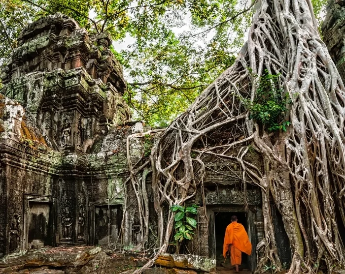 Resan avslutas i Kambodja och Siem Reap, där du utforskar det magnifika och ikoniska Angkor Wat. Du besöker flera av områdets mest berömda tempel, och dagen avslutas med solnedgång över djungeln från Bakheng Hill.
