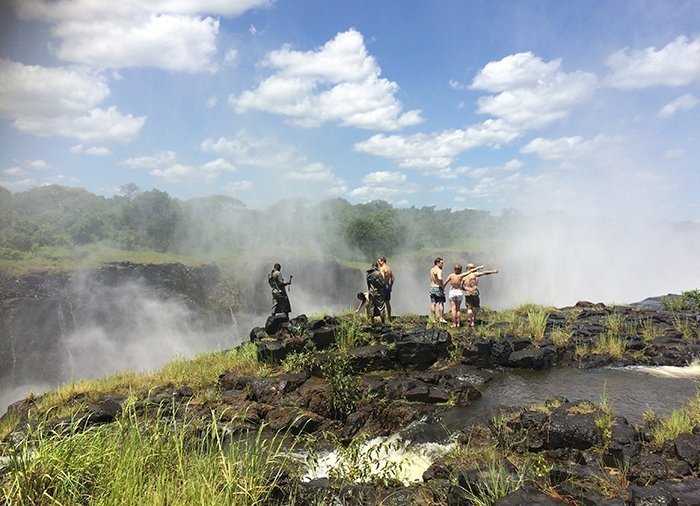Om du besöker Victoriafallen mellan september och november rekommenderar vi att du köper till en utflykt till Livingstone Island. Under den här perioden är vattennivåerna i Zambezifloden låga, och vattenfallen är därför mindre kraftiga än i till exempel mellan februari och maj. Som gengäld kan du under den här perioden göra som David Livingstone – se vattenfallen från Livingstone Island. Ön är öppen för besökare från mitten av juli till slutet av januari, beroende på vattennivåerna. Precis som David Livingstone åker du längs floden, och sedan går du i land och får en guidad tur. Om ”Devil’s Pool” (en naturlig pool på ön, där du kan ligga i vattnet och titta ner för bergsväggen) har öppet, kan du också ta en guidad simtur här.