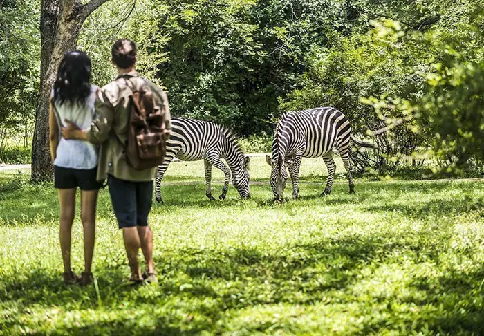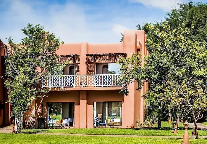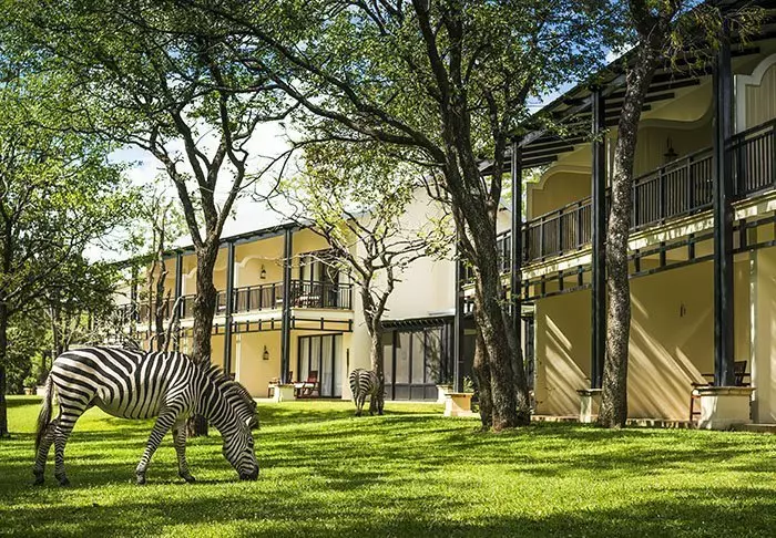 Eftersom hotellet ligger mitt i en nationalpark innebär det också att du bor här tillsammans med alla djuren, och det är inte ovanligt att möta en zebra eller en impala på vägen till frukostbuffén.