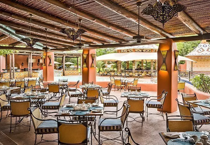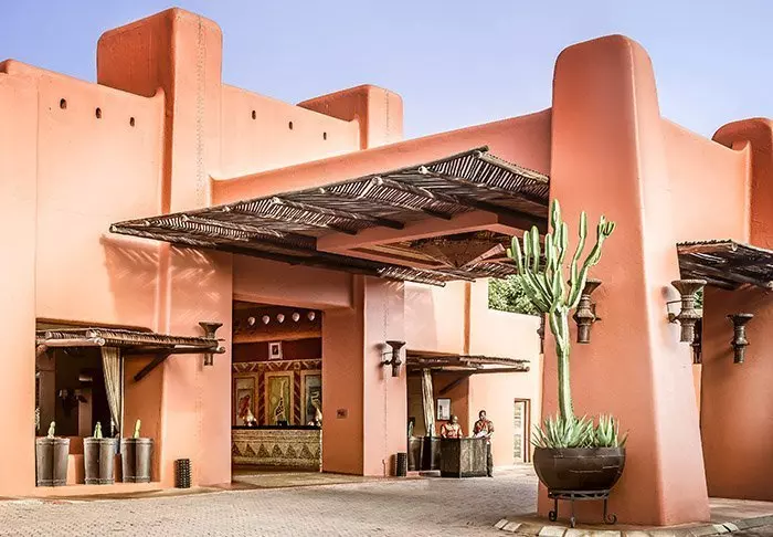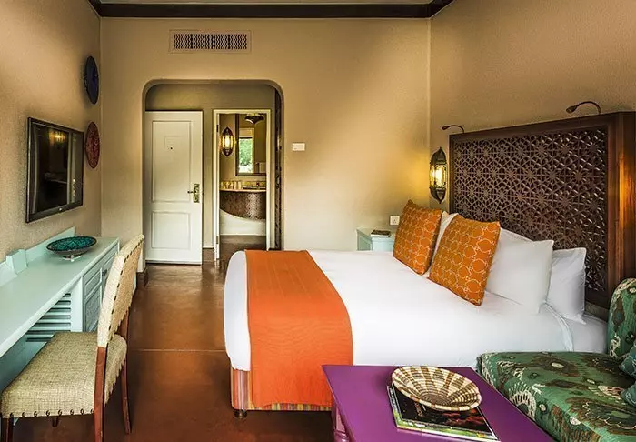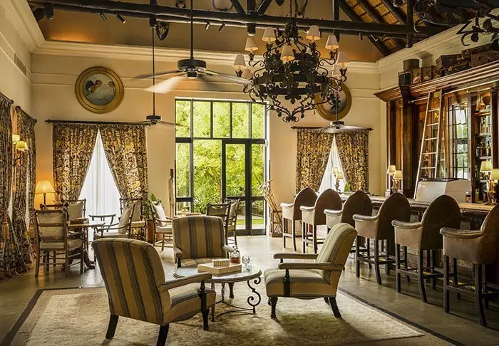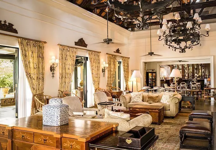 Det femstjärniga hotellet är byggt i en exklusiv stil från kolonialtidens Afrika med mörka möbler och djurskinn, och lever upp till sina fem stjärnor på alla sätt och vis.