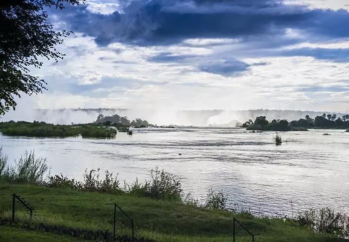 Du går ner till ett loungeområde, som ligger vid Zambezifloden. Du sätter dig i en stol med utsikt över vattnet. Till höger kan du se hur floden försvinner långt in i landet. Till vänster… Du tar din kamera. Till vänster, några hundra meter från dig, dansar den mest perfekta regnbågen du någonsin har sett. Den går från flodens ena sida till den andra, och bildar en perfekt ram runt de flera hundra meter höga vattenstänken från de mäktiga Victoriafallen, som du har utsikt över här från hotellet.